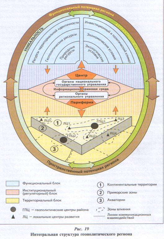 Див. мал.: у відповідних геоекосистемах до пунктирної лінії здається не виникає необхідності у витратах на охорону природи, але це не так. Систему 1 (низький потенціал) вигідно превести у стан системи 2 (високий потенціал), оскільки природоохоронні заходи можуть бути одноразовими або періодичними, а потенціал самоочищення – постійним. Ресурси оточуючого середовища не мають встановленої ціни, коли вони доступні для всіх, а тому у індивідуального користувача цих ресурсів нема очевидного мотиву для їх збереження, хоча кожен розуміє його необхідність. Тому необхідно створити такий мотив. Наприклад: фермер, володіє земельною ділянкою на правах приватного власника, тому він має мотив для покращання якості своєї власності (підвищення родючості грунтів для с/г), оскільки крім короткострокового позитивного ефекту в якості збільшення врожайності, на довгострокову перспективу власник отримує можливість повернцти витрачені кошти (на збільшення родючості) шляхом продажу родючої землі. У випадку аренди земельної ділянки, все навпаки: арендатор при короткостроковому використанні ресурсів, намагається отримати мах вигоду, використовуючи ресурси без врахування їх подальшого використання. Данні приклади показують необхідність розгляду природного середовища, як однієї з форм капіталу, аналогічну фізичним та фінансовим основним засобам. Таке уявлення про оточуюче середовище, як акціонерний капітал дозволяє нормативно визначити ідеї ноосферно-екологічного розвитку – визначити капітал, як розвиток, що забезпечує як мінімум його збереження, як максимум його зростання. .Парадигма регіонального розвитку. Сучасний світ, під впливом процесу глобалізації, вступив в епоху «революції регіонів», що означає зміну моделей розвитку регіонів. Старі адміністративні межі регіонів вже перестали вловлювати течію життя, міграційні та фінансові потоки, власність та права на неї. В результаті чого утворився «стратегічний вакуум», коли старі цілі досягати не має сенсу, а нові – поки що не встановлені. Що ж робити? - вести бій з новим, чи включатися в основну течію сучасного розвитку? Регіональна політика на державному рівні почала здійснюватись в епоху індустріалізації. Держава, будуючи ієрархію регіонів, розподіляло між ними сили розвитку, виконувало «збір» всієї держави, виходячи із загальнонаціональних цілей, а не стійкого розвитку певного регіону. Першочергово, у момент розгортання процесу індустріалізації, державна політика зводилась до модернізації регіонів, їх урбанізації та індустріалізації. При цьому, ведучу роль відігравали транспортні магістралі. Інфраструктурні проекти тих часів були масштабними і вимагали значних капітало та ресурсовкладень. У СРСР теріторіальні пріорітети були чітко визначені, так: У 20-30 рр – підйом відсталих окраїн (Середня Азія, Закавказзя); У 30-40 рр. – створення другої металургійної бази та заводів-дублерів на Уралі та в Сибірі; У 50-70 рр. – прискорений розвиток східних регіонів; У 60-80 рр. – формування крупних ТВК. В результаті – сформована система інфраструктур, каракас індустрії, системи розселення та адміністративно-державного управління регіонами. Однак, не дивлячись на високу ефективність такої регіональної політики, в другій половині ХХ ст. чітко виявились межі зростання традиційних індустріальних мод