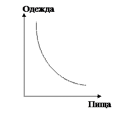 Предположим, потребитель располагает определенным денежным доходом и полностью тратит его на потребление. Причем нуждается он, как минимум, в двух товарах. Обобщим их как пища и одежда. Отказ от одного из товаров компенсируется получением другого товара в большем количестве. С точки зрения суммарной полезности покупателя могут одинаково удовлетворять различные комбинации пищи и одежды. Если оценить в баллах значение полезности, то ситуацию можно изобразить в виде таблицы и графика: