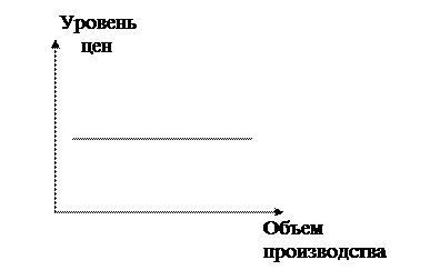 Под совокупным предложением понимают все конечные товары и услуги, которые производятся в стране. Уровень и возможности национального объема производства являются функцией количества и качества всех факторов производства. Неценовые факторы, влияющие на предложение и вызывающие сдвиги линии предложения, могут быть связаны с изменениями технологий, колебаниями цен на ресурсы, изменениями в налоговой политике. Понятие совокупного предложения часто используется как синоним валового национального (или внутреннего) продукта. Кривая совокупного предложения As показывает, какой объем совокупного выпуска может быть предложен на рынок производителя при разных значениях общего уровня цен в экономике. Форма кривой As интерпретируется по-разному в классической и кейнсианской школе. Кейнсианская модель. Рассматривает функционирование экономики на сравнительно коротких отрезках времени при следующих предпосылках: – экономика функционирует в условиях неполной занятости факторов производства; – цены, номинальная заработная плата относительно жесткие, медленно реагируют на рыночные колебания; – реальные величины (объем выпуска, занятость) более подвижны, быстрее реагируют на рыночные колебания. Линия As горизонтальна и соответствует объему производства значительно ниже потенциального ВВП.