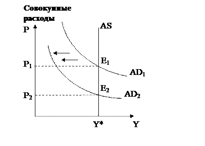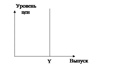 График показывает, что изменение совокупного спроса не влияет на реальный объем производства и занятость, а имеет следствием только изменение цен.