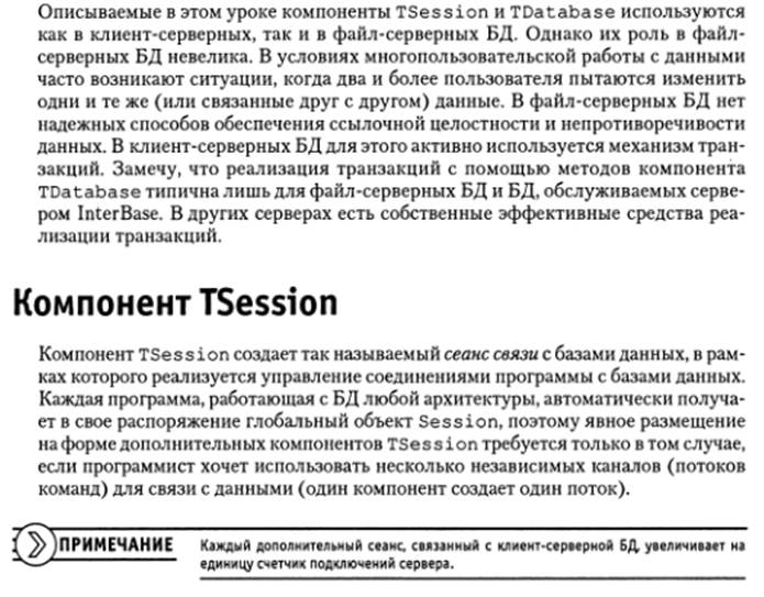 Компоненты tsession и tdatabase. Транзакции