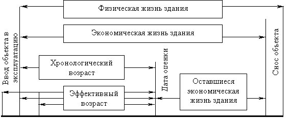 Хронологический возраст (ХВ) – период времени, прошедший со дня ввода объекта в эксплуатацию до даты оценки. Экономическая жизнь (ЭЖ) – время эксплуатации, в течение которого объект приносит доход. В этот период проводимые улучшения вносят вклад в стоимость объекта. Экономическая жизнь объекта заканчивается, когда эксплуатация объекта не может принести доход, обозначенный соответствующей ставкой по сопоставимым объектам в данном сегменте рынка недвижимости. При этом проводимые улучшения уже не вносят вклад в стоимость объекта вследствие его общего износа. Эффективный возраст (ЭВ) рассчитывается на основе хронологического возраста здания с учетом его технического состояния и сложившихся на дату оценки экономических факторов, влияющих на стоимость оцениваемого объекта. В зависимости от особенностей эксплуатации здания эффективный возраст может отличаться от хронологического возраста в большую или меньшую сторону. В случае нормальной (типичной) эксплуатации здания эффективный возраст, как правило, равен хронологическому. Оставшийся срок экономической жизни (ОСЭЖ) здания – период времени от даты оценки до окончания его экономической жизни. Субъективность определения таких показателей, как срок экономической жизни и эффективный возраст, требует от оценщика достаточно высокой квалификации и немалого практического опыта. Для определения величины накопленного износа использую следующие методы [1]: