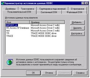 Рис. 6. Диалоговое окно Администратор источников данных ODBC
