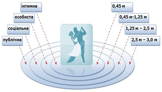 Прийнято виділяти чотири види комунікативної дистанції між людьми: