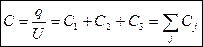 Формули (49,50) можна застосовувати для довільної кількості конденсаторів, з’єднаних у батарею. Ємність конденсаторів вимірюється в Так, наприклад, ємність в 1 Ф мала б відокремлена куля радіуса Якщо напругу на конденсаторі зробити надто великою, то може статися „пробій” – між обкладками конденсатора виникне іскра, що призведе до його псування. Тому кожен конденсатор характеризується не лише своєю ємністю, але й максимальною напругою.