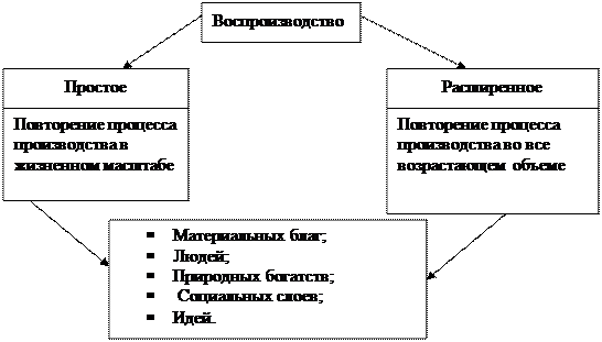 Тема 4. ОБЩЕСТВЕННОЕ ВОСПРОИЗВОДСТВО И 1. Общественное воспроизводство: сущность и типы. 1.1 Определение: воспроизводство есть постоянное возобновление процесса производства. 1.1.1 Фазы воспроизводства: производство, распределение, обмен, потребление. 1.1.2 Структура производства: - Материальная - Нематериальная - Отраслевая структура 1.2 Типы и элементы воспроизводства