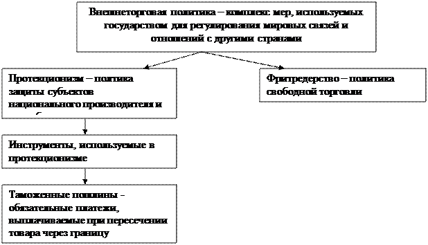 2.1. Международная торговля Торговля между странами является традиционной формой внешнеэкономических отношений. Каким образом государство может влиять на внешнюю торговлю? В мировой практике большинство стран в торговой политике использует два подхода: протекционизм и фритредерство. Политику протекционизма отстаивали еще меркантилисты в XVII-XVIII вв. на ранних этапах формирования развития рыночного хозяйства в европейских странах. Суть протекционизма – использование различных ограничений на ввоз товаров в целях защиты внутреннего рынка от конкуренции иностранных товаров. Альтернативой протекционизму во внешней торговли является фритредерство, или политика либерализации торговли. Экономисты-классики ратовали за открытость экономики, создание максимально благоприятных условий национальным производителям. Для регулирования отношений между странами в области внешней торговли созданы международные организации: ГАТТ – многосторонний договор, действующий с 1948 г. и содержащий принципы, нормы, ее правила, на которых построены торговые отношения с участниками; ВТО – преемница ГАТТ, действующая с 01.01.1995 г.; ЮНКТАД – организованная с 1962 г. для содействия развитию и регулированию торговли между развитыми и развивающимися странами.