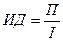 где t – время от момента получения результата (произведения затрат) до момента сравнения, измеряемое в годах. Норма дисконта Е – коэффициент доходности капитала (отношение величины дохода к капитальным вложениям), при которой другие инвесторы согласны вложить свои средства в создание проектов аналогичного профиля. Индекс доходностиинвестиций (ИД) представляет собой отношение суммы среднегодовой прибыли (П), получаемой от реализации проекта к величине инвестиций (I) этого проекта: