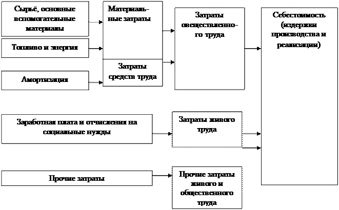 Выпуск продукции (выполнение работ, оказание услуг) предполагает соответствующее ресурсное обеспечение, величина которого оказывает существенное влияние на экономику предприятия, на его конкурентоспособность. Издержки производства или себестоимость продукции (работ, услуг) представляют собой стоимостную оценку используемых в процессе производства продукции природных ресурсов, сырья, материалов топлива, энергии, основных фондов, трудовых ресурсов, а также других затрат на её производство и реализацию. Различают две системы классификации текущих затрат: по экономическим элементам и калькуляционным статьям расходов. Практическое использование первой системы - составление сметы затрат на производство. Смета необходима не только для анализа и изыскания путей снижения затрат по экономическим элементам, но и для составления материальных балансов, нормирования оборотных средств, разработки финансовых планов. Для предприятий всех отраслей промышленности установлена следующая - затраты на оплату труда, отчисления на социальные нужды; - амортизация основных фондов; - прочие денежные затраты.