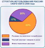 Подсчет ВВП методом конечного использования - это, по существу, определение ВВП по расходам. ВВП используется членами общества лишь тогда, когда осуществлены расходы на приобретение товаров и услуг. В принципе все расходы можно сгруппировать в зависимости от того, кто их осуществляет, - домашние хозяйства, предприятия, государство, иностранцы.