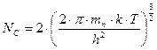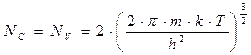 Здесь NС и NV - эффективная плотность состояний (на 1 см3) в зоне проводимости и валентной зоне соответственно. h = 4,14·10-15 эв·сек – постоянная Планка. mn и mp – эффективная масса электрона и дырки соответственно. * Эффективная масса электрона определяется из уравнения F = mn ·dV/dt, где F – кулоновская сила, действующая на электрон, а V – скорость электрона. В большинстве практических случаев можно считать, что mn = mp = m – массе электрона в состоянии покоя. Тогда:
