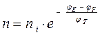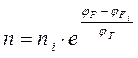 где: φF i – потенциал Ферми в (вольтах) собственного полупроводника, φF - потенциал Ферми в (вольтах) соответствующего собственного полупроводника, φT = k·T/q – температурный потенциал (в вольтах). При комнатной температуре