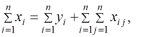 Балансовая модель производства записывается в виде системы уравнений, каждое из которых выражает требование равенства (баланса) между количеством продукции, произведенной отдельным экономическим объектом и совокупной потребностью в этом продукте.