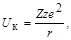 Таким образом, заряженная частица для сближения с ядром или при вылете из ядра должна преодолеть кулоновский барьер. На рис. 1.9.1 б приведена модельная потенциальная функция, где ядро и частица представлены в виде точечных зарядов. Высота кулоновского барьера в этом случае составит