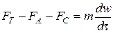 Рисунок 4.3 – Силы, действующие на частицу при ее движении в вязкой среде: