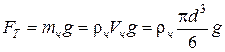 Осаждение применяется для грубого разделения суспензий под действием сил тяжести. Этот процесс проводится в аппаратах, называемых отстойниками. Для расчета отстойников необходимо рассчитать скорость осаждения, т.е. скорость движения твердых частиц в жидкости. Для вывода формул расчета скорости осаждения рассмотрим движение твердой частицы шарообразной формы в неподвижной жидкости под действием сил тяжести. Если частица осаждается под действием сил тяжести, то скорость ее движения в жидкости сначала возрастает из-за ускорения свободного падения. Одновременно с увеличением скорости частицы будет расти сопротивление среды ее движению, поэтому ускорение частицы будет уменьшаться и через некоторое время станет равным нулю. При этом наступает равновесие действующих на частицу сил, и она будет двигаться равномерно с постоянной скоростью, которая и является скоростью осаждения. Рассмотрим силы, действующие на осаждающуюся частицу в жидкости (рисунок 4.3). По второму закону Ньютона
