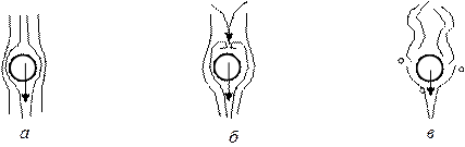Переходный режим движения С увеличением скорости движения тела все большую роль начинают играть силы инерции. Под действием этих сил пограничный слой отрывается от поверхности тела, что приводит к понижению давления за движущимся телом в непосредственной близости от него и к образованию беспорядочных местных завихрений в данном пространстве (рисунок 4.5
