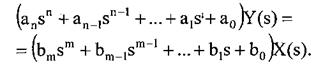 Зовні рівняння (3) і (7) схожі, але вони принципово відрізняються одне від одного, оскільки в першому буква р позначає оператор диференціювання d/dt, а змінні x(t) та y(t) є реальними функціями часу. Тобто рівняння залишається диференціальним. Рівняння (7) - алгебраїчне. У ньому буква s позначає комплексу змінну, а величини X(s) і Y(s) є зображеннями фізичних величин x(t) та y(t). Крім того, схожість даних рівнянь можлива, тільки якщо система стаціонарна, тобто коефіцієнти аj bj постійні, а початкові умови для диференціального рівняння нульові. Операційна форма запису рівнянь проста і зручна, оскільки перетворити та розв'язати алгебраїчне рівняння простіше, ніж диференціальне. Це забезпечило її широке застосування в теорії автоматичного керування. Введемо поняття передавальної функції за Лапласом. Передавальною функцією за Лапласом W(s) називається відношення зображення вихідної величини до зображення вхідної величини за нульових початкових умов. Із (7) отримуємо: