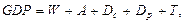 де GDP — валовий внутрішній продукт; С — споживчі витрати; Іg — валові інвестиції; G — державна закупівля товарів і послуг; NX — чистий експорт. Споживчі витрати (С) — це витрати домашніх господарств на споживчі товари і послуги. В розвинутих країнах частка споживання домашніх господарств у ВВП найвища порівняно з іншими компонентами сукупних витрат і становить більше половини сукупного попиту. В кейнсіанській теорії відводиться важлива роль споживанню домашніх господарств у забезпеченні виходу економіки з кризи. Валові інвестиції (Іg) включають чисті інвестиції (Іп) та амортизацію (А):