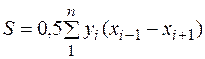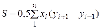 або де п – кількість вершин полігону; і – номер вершини; (і – 1) та (і + 1) – номера вершин суміжних зліва і справа до вершини і по напряму ходу полігону. Точність визначення площ аналітичним способом складає