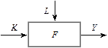 Поняття виробничої функції (ВФ) виникло з огляду на потребу відбити залежність між обсягом продукції, що виробляється, і компонентами витрат ресурсів (праці та капіталу). Американський економіст П. Дуглас помітив, що співвідношення доходів від праці та капіталу в національному доході США майже не змінюється з часом. Цей висновок підтвердили подальші емпіричні дослідження для різних країн світу. Описуючи виробничу підсистему економіки за допомогою ВФ, цю підсистему розглядають як «чорну скриньку», на вхід якої подаються ресурси X 1, X 2, …, Xn, а на виході отримуються річні обсяги різноманітної готової продукції Y 1, Y 2,..., Yk. Як фактори виробництва на макрорівні здебільшого розглядають виробничі фонди K (капітал) та працю L, а як результати виробництва — валовий випуск продукції (ВВП або НД) Y (рис. 7.1).