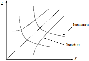 Рис. 7.2. Ізокванти та ізокліни для ВФ У загальному вигляді ВФ цього класу можна подати так:
