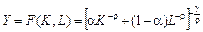 де a1, a2 — коефіцієнти еластичності. Частинним випадком такої ВФ є функція Коба—Дугласа, для якої виконується умова a1 + a2 = 1. Беручи до уваги технологічний прогрес, до моделі часто включають множник exp(l t). Однією з переваг зазначеної моделі є те, що вона стає лінійною після