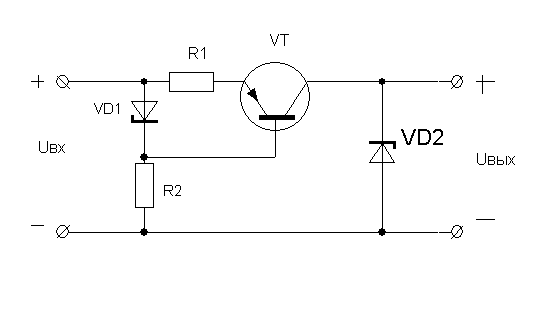 Рисунок 2.40 – Типовая схема параметрического стабилизатора напряжения на одном стабилитроне