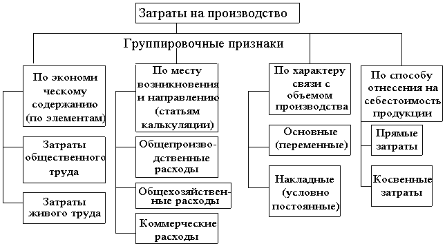 Рис. 1. Группировка затрат на производство