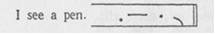Короткі паузи всередині речення позначаються однією вертикальною лінією(),а більш тривалі, які звичайно бувають в кінці речень,— двома вертикальними лініями( ||). В такому зображенні інтонації поза текстом знаки показують наголос, висоту і напрямок руху голосового тону кожного складу. Для позначення висотного і фразоакцентного компонентів інтонації в текстах використовують іншу систему знаків, за якою в неемфатичному мовленні знак [ꞌ] угорі перед складом показує, що даний склад наголошений, знак [ˌ] внизу позначає напівнаголошений склад, [ˋ] — наголошений склад, вимовлений високим спадним тоном, [ˊ] — наголошений склад, вимовлений високим висхідним тоном, [ ̖] — наголошений склад, вимовлений низьким спадним тоном, [ˏ ] — наголошений склад, вимовлений низьким висхідним тоном. Ненаголошені склади не мають ніяких позначень. Отже, інтонацію наведених вище речень у тексті буде позначено так: My 'pen is in my ̖desk. I ̖need it.