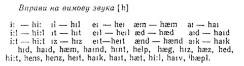 2.04.Фонема [h] — фарингальний щілинний глухий приголосний звук. При вимовлянні приголосного [h] корінь язика відтягується до задньої стінки зіва, утворюючи досить значне звуження. Короткий, але сильний струмінь повітря, проходячи через звуження, утворює звук, що нагадує шумний видих. Це й буде звук [h ]. В українській мові такого звука немає. Український звук [г ] за звучанням і артикуляцією не співпадає з англійським [h]: при вимовлянні [г] задня спинка язика підноситься до м’якого піднебіння. У вимовлянні [г] беруть участь голосові зв’язки ([г] — дзвінкий приголосний). Потренуйтесь у вимовлянні звука [h], стежачи за тим, щоб він не уподібнювався до українського [г]. Важливо, вимовляючи слово із звуком [h], орієнтуватись на голосний, який, як правило, йде після [h], і вимовляти його з придихом.