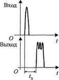 искажения, так как часть световой энергии передается по сердцевине, часть по оболочке и некоторая часть окажется в окружающем пространстве. Это приводит к расширению и некоторому ослаблению выходного сигнала световода (рис. 5.13). Кроме того, сигнал на выходе оказывается задержанным на величину t3 за счет конечного времени прохождения по световоду. Между углом полного внутреннего отражения ΘО и апертурным углом падения луча аmах существует взаимосвязь: чем больше ΘО, тем меньше атах. Поэтому необходимо стремиться, чтобы угол входа луча в световод укладывался в апертурный угол аmах, а угол падения луча на границу сердцевина— среда был больше угла полного внутреннего отражения ΘО. Длина волны передаваемого по световоду сигнала связана с диаметром сердцевины выражением λ = dcos Θпад. Учитывая, что cos Θпад = ^/1 - sin2 9пад и sinΘпад = п21п1 получим