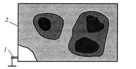 На рис. 5.20 приведен пример распределения потенциалов на сплошной заземленной поверхности ГШ с заземлением в одной точке. Отметим, что электрический потенциал схемной земли в данном случае изменяется в пределах 2... 100 мВ. Если компоненты схемы размещаются на поверхности платы с потенциалами менее 2 мВ и более 100 мВ (при проектировании схемы изначально предполагалось, что земляной слой платы имеет нулевой потенциал), то, например, для схемы усилителя, сигнал может заметно исказиться. Сложная аппаратура с одним общим проводом функционировать не будет из-за появления на нем значительной гальванической помехи. При проектировании выделяют общие провода первичной и вторичной системы электропитания, высокочувствительных низкоуровневых схем, относительно нечувствительных мощных высокоуровневых схем, импульсных схем. Для уменьшения помех по земляным соединениям для различных подсхем системы используются несколько ИВЭП одинакового номинала каждый со своим общим проводом. В небольших электронных системах, например, в микрокалькуляторе или радиоприемнике, получить низкоомный общий проводник относительно несложно. В сложных системах (большая ЭВМ, радар) сформировать низкоомную землю крайне трудно. Поскольку размеры сложных систем увеличиваются, то влияние взаимных индуктивностей и распределенных емкостей между общими проводами становятся заметными уже на низкой частоте. Поэтому в больших системах некоторая разница потенциалов на общих проводниках имеет место между различными частями системы и этот факт нужно принимать во внимание при проектировании защищенной от воздействия помех аппаратуры. Общие провода электронных приборов объединяются по схемам одно- и многоточечного заземления (рис. 5.21, а). В первом случае общие провода модулей системы подсоединяются к общей нулевой точке, являющейся базой, относительно которой отсчитываются все потенциалы системы (см. рис. 5.21, а). Хотя в одноточечной земле связь модулей через общее сопротивление нулевого потенциала отсутствует (линия выродилась в точку), будет иметь место