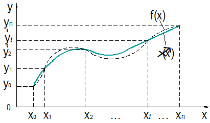Максимальная степень интерполяционного многочлена m=n, где n – заданное число значений (число опытных точек). В этом случае говорят о глобальной интерполяции, т. к. один многочлен φ(х)= используется для интерполяции функции f(х) на всем рассматриваемом интервале изменения х. Коэффициенты системы уравнения (5.2). Интерполяционные многочлены могут строиться отдельно для разных частей рассматриваемого интервала изменения х. В этом случае имеем кусочную (или локальную) интерполяцию. В качестве локальной интерполяции часто используют линейную и квадратичную интерполяцию.