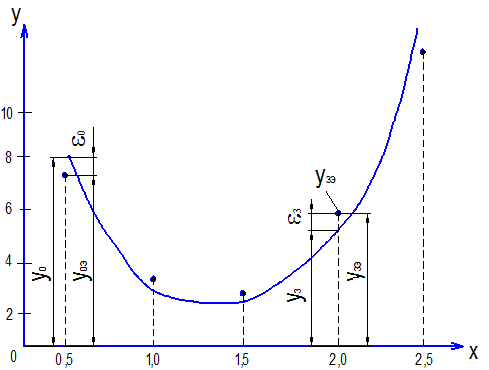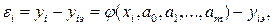 Напомним, что yiэ - экспериментальные значения, а yi - расчетные значения функции. Отклонения yi от yiэ будем обозначать εi: