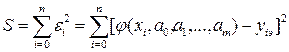 Запишем сумму квадратов отклонений для всех точек x0, x1,…,xn: