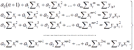 Выражение (6.13) является системой уравнений для определения Рассмотрим применение МНК для частного случая, широко используемого на практике. В качестве эмпирической функции рассмотрим многочлен: