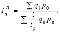 Основной формой индекса цен для совокупности разнородных товаров является агрегатный индекс. Сумма произведений цен товаров на их количество составляет товарооборот совокупности товаров. Чтобы выявить непосредственно изменение цен, необходимо зафиксировать показатели количества товаров. Если фиксируются показатели количества товаров базисного периода времени, то это индекс цен, рассчитываемый по формуле Ласпейреса: