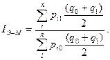 В этих формулах ip – это индивидуальный индекс средних цен на отдельные товары, рассчитанный по данным о ценах в различных пунктах продажи этих товаров. Статистические исследования показали, что в долговременном периоде формула Пааше занижает реальное изменение цен вследствие обычной отрицательной корреляции между ценой и спросом на товар (удельный вес товара в общем объеме товарооборота падает, если цена его возрастает). В случае долгосрочных и международных сопоставлений разница между индексами, взвешенными разными способами, обычно составляет несколько процентов (до 30–50%). Зарубежные статистики пытались найти компромиссную формулу. Например, известен так называемый Индекс Эджворта– Маршалла:
