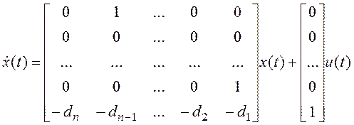 Преимущество управляемой формы заключается в простоте вычислений передаточной функции и закона управления с обратной связью по состоянию (см. ниже). Для систем с одним входом и одним выходом к каноническим формам уравнений в переменных состояния можно придти другим путем, не прибегая к помощи матрицы T, а именно используя передаточную функцию системы. Передаточная функция системы с одним входом и одним выходом имеет вид