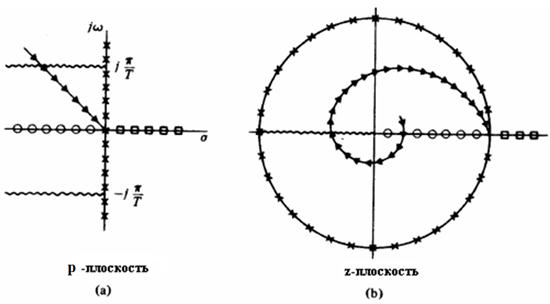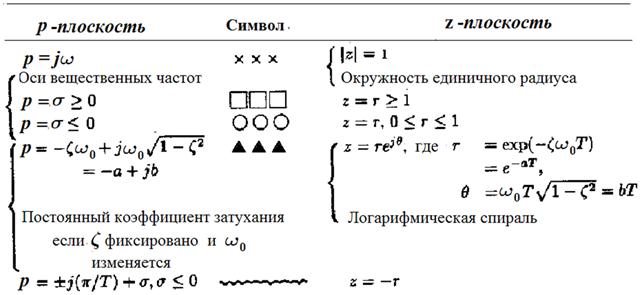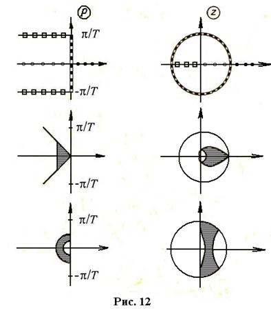Уравнение (37) определяет отображение полюсов непрерывного объекта в полюса цифровой системы. На рис. 12 и рис. 12а показано отображение комплексной р - плоскости на z -плоскость, когда
