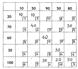 Представленные два варианта решения на получены на базе линейной алгебры. И для оценки решения была использована целевая функция, которая оценивает затраты на перевозки. Предложенный алгоритм построен на основе введения принципа поочерёдного удовлетворения потребностей в перевозках за счет последовательного предложения ресурсов. Сама последовательность выбрана на основе принципов, которые однозначно приводят к решению поставленной задачи. Возможность введения тех или иных принципов расчёта в исследовании операций определяется характером задачи. В данном конкретном примере мы получили результат более экономичный, с точки зрения затрат, чем в нулевой версии. Но это могло произойти и случайно. При использовании предложенного алгоритма можно продумать ещё множество других вариантов, где более полно учитываются различные особенности коммерческих отношений, что характерно для рыночных условий. С другой стороны это позволяет нам перейти к рассмотрению известного алгоритма распределения обозначенного как «транспортная задача» линейного программирования