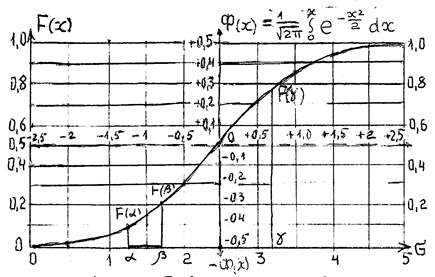 По данным графикам распределения можно определить вероятность того, что в очередном испытании измеренное значение случайной величины хi будет находиться в интервале значений α ≤ хi ≤ β (при условии, что реальный процесс подчиняется закону нормального распределения). При использовании дифференциальной функции распределения вероятностей, искомая вероятность будет равна площади криволинейной трапеции (заштрихованная часть графика рис. 14.7). При использовании интегральной функции: Р(хi ) = F(β) – F(α) (рис. 14.8). В организации и проведении статистического эксперимента следует иметь в виду, что его программа всегда ориентирована на выход к некоторым теоретическим функциям распределения, которые закономерно, по мере поступления данных, образуют генеральную совокупность. По этому поводу в математической энциклопедии даётся следующая справка. Генеральная совокупность — понятие теории статистического выборочного метода. В математической статистике генеральной совокупностью выделяется множество каких-либо однородных элементов, из которого, по определённому правилу, выделяется некоторое подмножество, называемое выборкой. В простейших случаях контролируемая выборка извлекается из генеральной совокупности случайно (наугад), что с точки зрения теории вероятностей, означает: если генеральная совокупность содержит N элементов и отбирается выборка из n элементов (п < N ), то выбор должен быть осуществлён таким образом, чтобы для любой группы из n элементов вероятность быть извлечённой равнялась n! (N — 1)! N!. В математической статистике принято результаты однородных наблюдений называть выборкой даже в том случае, когда эти результаты не соответствуют понятию генеральная совокупность, указанному выше. Понятие бесконечной генеральной совокупности не является логически безупречным и необходимым. Для решения статистических задач нужна не сама генеральная совокупность, а некоторое, достаточно большое количество однородных данных, которых было бы достаточно, для замены гистограммы на графики функций теории вероятностей соответствующего вида. С этой целью необходимо знать закон распределения генеральной совокупности. Если закон распределения неизвестен, то имеются основания предположить, что он имеет определенный вид (назовем его А), поэтому выдвигают гипотезу: генеральная совокупность распределена по закону А. Таким образом, в этой гипотезе речь идет о виде предполагаемого распределения. Возможен случай, когда закон распределения известен, а его параметры неизвестны. Если есть основания предположить, что неизвестный параметр θ равен определенному значению θ0, тогда выдвигают гипотезу: θ=θ0. Таким образом, в этой гипотезе речь идет о предполагаемой величине параметре одного известного распределения. Возможны и другие гипотезы: о равенстве параметров двух или, нескольких распределений, о независимости выборок и многие другие. Статистической называют гипотезу о виде неизвестного распределения, или о параметрах известных распределений. Например, статистическими являются гипотезы: 1) генеральная совокупность распределена по закону Пуассона; 2) дисперсии двух нормальных совокупностей равны между собой. В первой гипотезе сделано предположение о виде неизвестного распределения, и во второй — о параметрах двух известных распред