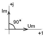 Анализируя векторную диаграмму можно сделать вывод, что функция тока опережает функцию напряжения на угол 90°. Точно так же будет выглядеть векторная диаграмма действующих значений Только размеры векторов уменьшаться в √2 раз.