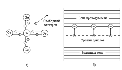 При некоторых условиях один из электронов покидает свое место и становится свободным электроном. Освободившееся место называют «дыркой». «Дырка» может перемещаться от одного атома к другому, как и свободные электроны. Подвижность носителей заряда определяет электропроводность материала, для электронов – это электропроводность n-типа, для «дырок» - электропроводность р-типа (позитив – положительный). Для усиления n- или р- электропроводности полупроводники легируют, т.е. добавляют небольшое количество примеси. Примеси, которые создают электронную n-проводимость называют донорными (5-ти валентная сурьма). Для создания дырочной р-проводимости в полупроводник добавляют акцепторную примесь (3-х валентный индий). Таким образом, в одном полупроводнике удается создать две области с различным типом электропроводности (р- и n-типа). Между ними существует пограничная область, которую называют р-n-переходом. Слайд 3