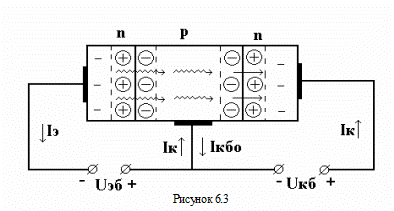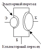 Основа транзистора – пластинка с р-проводимостью (база). С двух сторон вплавлены донорные пластинки, образующие n-области. Вывод с меньшей пластинкой называют эмиттером (эмиссио – выпуклость), вывод с большей пластинкой – коллектором (собирать). Принцип работы транзистора