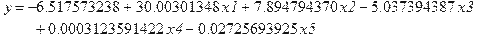 > fit[leastsquare[[x1,x2,x3,x4,x5,y]]]([X1,X2,X3,X4,X5,Y]);