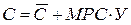 Потребительские расходы (С)– это сумма средств, расходуемых на приобретение конечных товаров и услуг населением. На эти расходы оказывают влияние факторы: 1) Уровень располагаемого дохода (Y) С ростом располагаемого дохода потребительские расходы растут. Связь между потреблением и доходом выражается функцией потребления, имеющей вид: где, С – потребление, С – автономное потребление, т.е. то, которое не зависит от уровня дохода. Y – располагаемый доход (это доход за вычетом уплаченных налогов). МРС – предельная склонность к потреблению. (Это параметр, показывающий на сколько изменится потребление при изменении дохода, т.е. МРС = ΔС/ΔY). 2) Ожидания потребителя. (Ожидание роста цен и дефицита товаров ведут к снижению сбережений и к росту потребительских расходов.) 3) Изменения в богатстве. (Чем больше накопленное богатство, тем больше величина расходов.) 4) Уровень цен. (Рост уровня цен снижает реальное богатство и уменьшает потребление.) 5) Потребительская задолженность. (Если потребительская задолженность высока, то текущее потребление падает, т.к. необходимо погасить долги.) 6) Налогообложение доходов потребителя. (Чем меньше налогообложение, тем выше потребительские расходы.) Увеличение дохода должно вести к росту потребления, однако, как отмечал Кейнс, увеличение располагаемого дохода на единицу ведет увеличению потребления менее, чем на единицу. Это означает, что предельная склонность к потреблению (производная от потребления по располагаемому доходу) строго меньше единицы. Поскольку из каждого дополнительной единицы дохода на потребление идет только доля меньше, это что какая то часть дохода не потребляется, расходуется на сбережения. Таким образом, функция сбережений: S=-C +МРS x У, где MPS – предельная склонность к сбережениям.