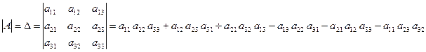 Определителем матрицы третьего порядка, соответствующей матрице (1), называется число, обозначаемое символом: