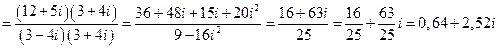 умножим числитель и знаменатель дроби на сопряженное делителю комплексное число , получаем